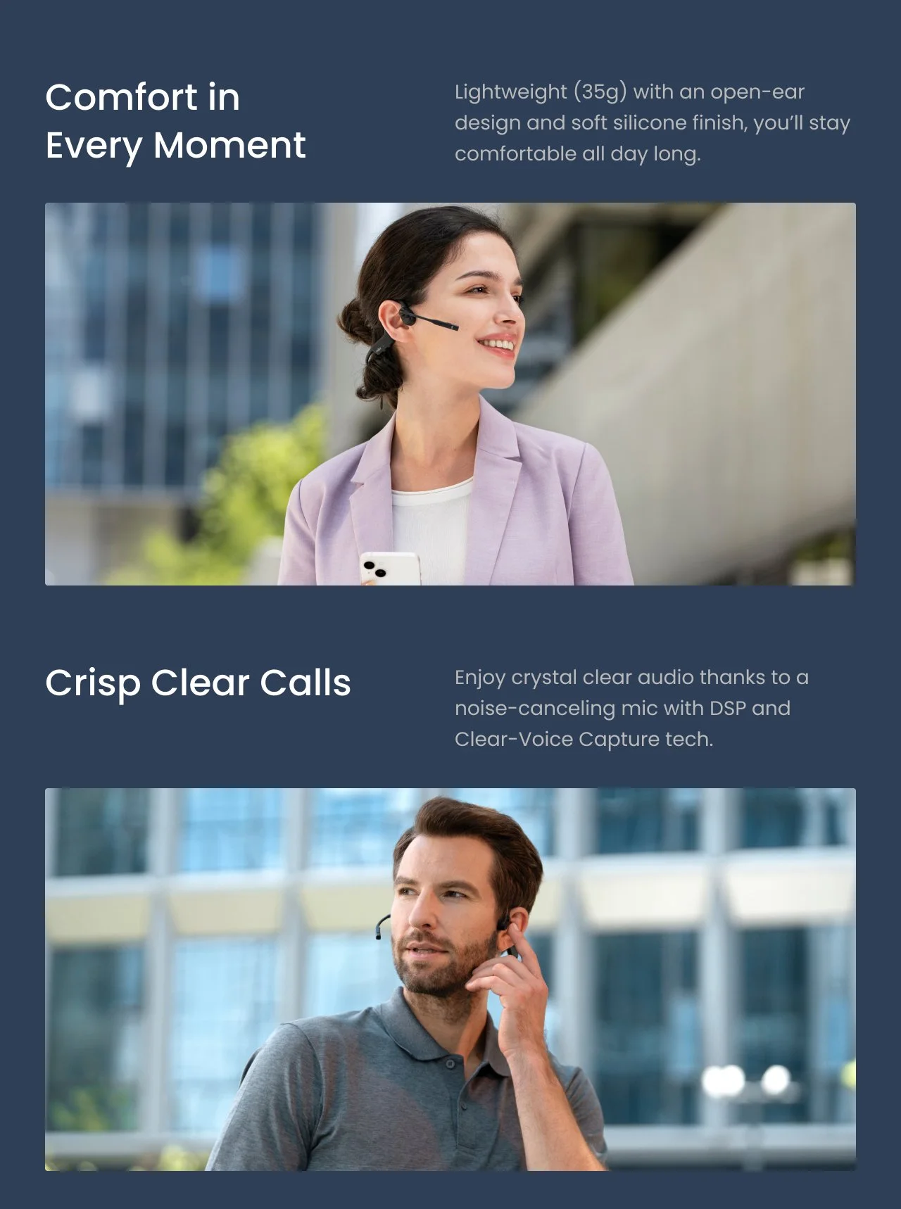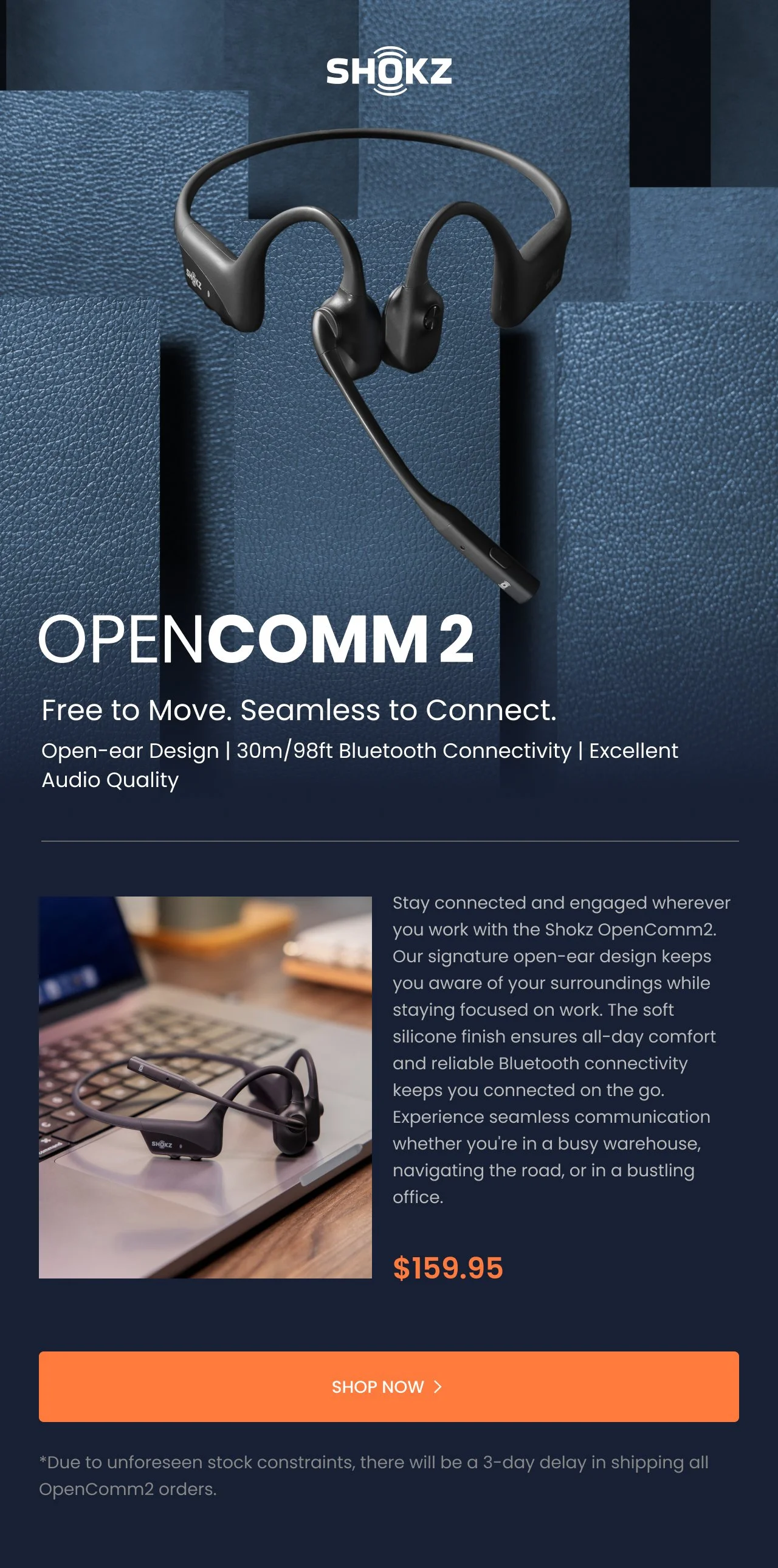 The OpenComm2 launch was my first major product campaign at Shokz, and it came with a steep learning curve. I led the development of all consumer-facing copy, from initial drafts to final approvals. With experience working across time zones, I was able to streamline workflows between the U.S. and China to keep the process efficient. As a newcomer to the company, I was especially focused on crafting storytelling that felt clear and accessible for everyday users, while still delivering the technical details that set the product apart.